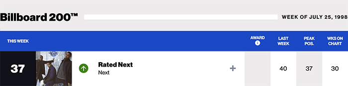 | このページでは1998年の全米ナンバーワンソングを紹介します(このページついて)。ここ数年、音楽の聞き方が変わって来たことが、チャート集計にも影響を与えているようです。 2018年から、ストリーミングデータ(音楽配信)の集計方法を変更しました。また、これまではチャートの日付の1週間前の火曜日(つまり11日前)に発表されていましたが、データ集計から発表までの期間が短くなり、日付の4日前に発表され、よりリアルタイムに近い発表になりました。たとえば最新チャートなら2025年1月11日、発表は1月7日となります。 (最新の1位はコチラ)。