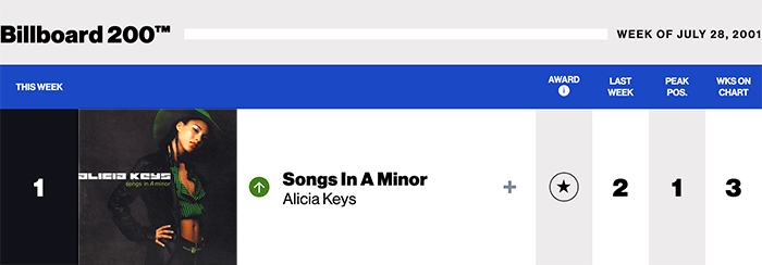 |Alicia Keys.com|Alicia Keys(Billboard chart history)|