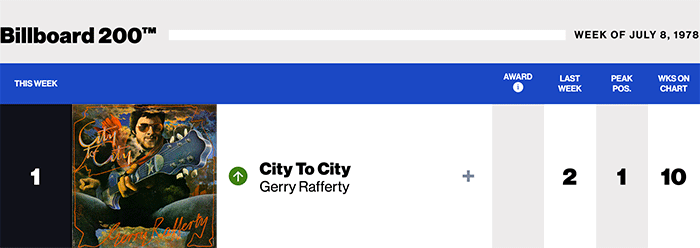 |Gerry Rafferty.com|Gerry Rafferty(Billboard chart history)|