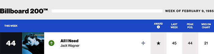|Jack Wagner(Billboard chart history)|