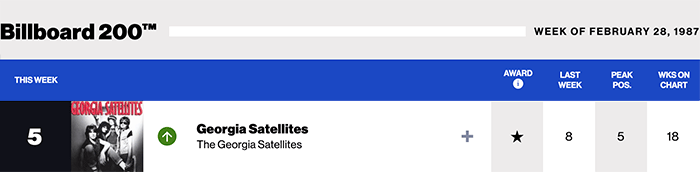 |The Georgia Satellites.com|The Georgia Satellites(Billboard Chart History)| |Dan Baird.com|