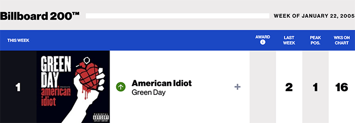 |Green Day.com|Green Day(Billboard chart history)|