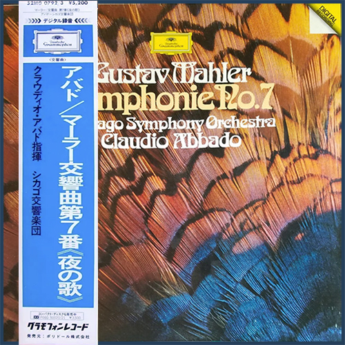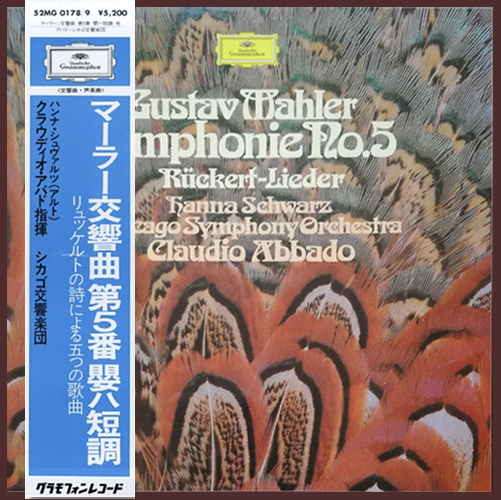 アバドのマーラーを知るきっかけは、『レコード芸術』のマーラー特集。そこで交響曲別のディスコグラフィーがランキング形式で掲載されていて、交響曲第2番が第1位に推薦されていたことがきっかけでした。元々は、その頃新譜として告知されていたゲオルグ・ショルティの同曲の情報を知りたくて手にした雑誌でした。まだショルティ盤はレビューなどもなかったので、そのランキングにすら登場していませんでした(広告は出ていた)。目に留まった理由は、鳥の羽(クジャク)をあしらった統一感のあるジャケット。ドイツ・グラモフォンはジャケットセンスが本当に高かった。 |