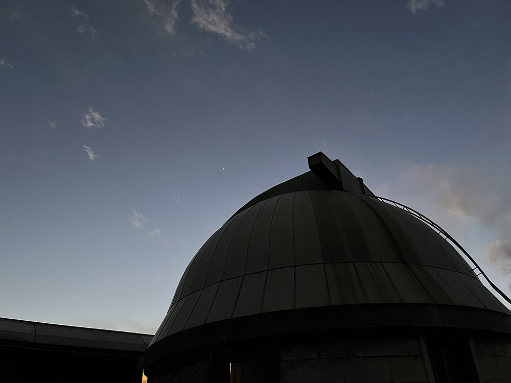 | 昼間は快曇だったのが夕方には見事に晴れ渡り、昨年12月から出入りさせてもらっている科博の観望会への鑑賞者も30名以上いらっしゃいました。