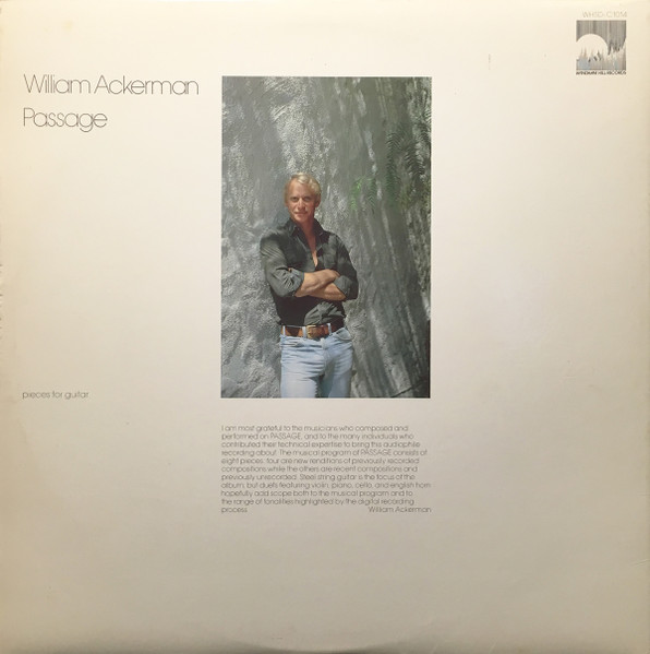| ウィルにとっては4作目、日本ではジョージ・ウィンストン『オータム』と並んでこれがデビュー作(1983年11月28日発売)となったアルバムです。当時のウィンダム・ヒルを象徴していた白地に風景写真というスタイルの中でも、全アルバムを通して1、2を争うほどの美しさではないでしょうか(個人的には3rdのジャケットが内容といいタイトルといい一番のお気に入りです)。 初めてこのジャケットを見たときの衝撃は、今もって忘れることのできない感覚です。霧に包まれた森が、アッカーマンの音楽に対する私の期待のベールのように見えたものです。そしてその期待を裏切らなかった美しい楽曲の数々。 アルバム中4曲が既存曲のリ・レコーディング(2、3、5、7)で残りの半分が新曲なので、日本のファンにとってはウィルの音楽を知る意味でちょうど良いデビューになったのかもしれません。かくいう私もそのうち1人です。その結果、多くの人の心に、今までにないけれど、どこか懐かしくも新しい響きとして刻まました。 スタイル的にはギター・ソロだった今までの作品集とは異なり、ソロとデュオが半々になっています。これは、後のウィルのスタイルを語る上では欠かすことの出来ないアルバムになっているのです。 1.ではダロール・アンガーのむせび泣くようなヴァイオリンとのコラヴォレーションで始まり、名曲中の名曲である3ではダン・レイターに亡き母の面影をチェロという人の声に近い楽器で語らせています。4の瞑想的なイングリッシュ・ホルンはロバート・ハッバード、そして7では、これまでで唯一の共演となるピアニストのジョージ・ウィンストンと感情的なユニゾンを奏でています。これらのアンサンブルでは、共演者のパートは、それぞれのアーティストが作曲したメロディです(共作ということ)。 どの曲にも共通しているのは、ウィルのフィンガー・ピッキングの優しいぬくもりがリスナーの気持ちをリラックスさせてくれるということでしょう。今の日本では考えられないことですがが、このアルバムから“ブリックレイヤー家の美しい娘”(5)がシングルカットされるという、異常なほどブレイクていました、当時の日本では。 音が風景になった、風景が音になった というキャッチコピー通りのアルバムなのです。 ヴァイオリンやチェロが加わったからといって、決してクラシックなスタイルではなく、当時のレコード屋が悩んでいたとおり、ユニークなスタイルが全アルバムに浸透しています。クラシックでもなくジャズでもない。まさにウィンダム・ヒルというひとつのジャンルといっていいほどの瞬間(時代)に私は出会い、立ち会うことができたのです。その第一弾がこの『PASSAGE』とジョージ・ウィンストンの『DECEMBER』だったのです。 |