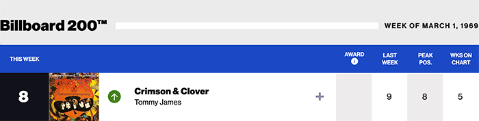 |Tommy James.com|Tommy James(Billboard chart history)|