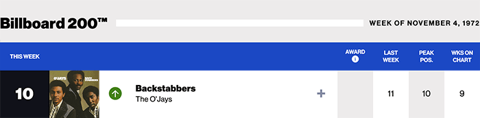|The O'Jays.com|The O'Jays(Billboard Chart History)|