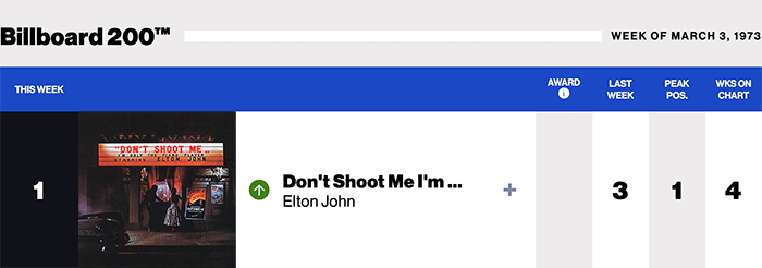 |Elton John.com|Elton John(Billboard chart history) |