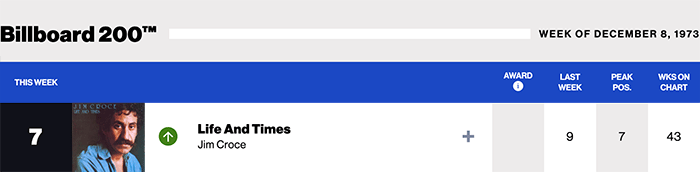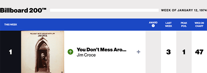 |Jim Croce.com|Jim Croce(Billboard Chart History)|