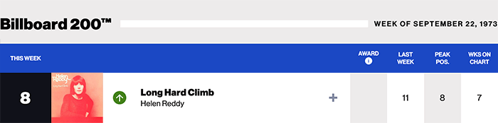 |Helen Reddy.com|Helen Reddy(Billboard chart history)|