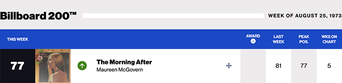|Maureen McGovern.com|Maureen McGovern(Billboard Chart History)|