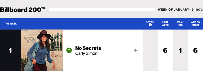 |Carly Simon.com|Carly Simon(Billboard chart history)|