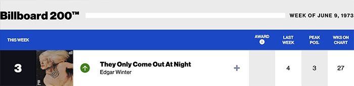 |Edgar Winter.com|Edgar Winter(Billboard Chart History)|