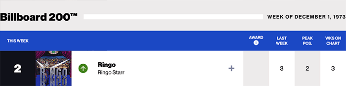 |Ringo Starr.com|Ringo Starr(Billboard chart history)| |Geroge Harrison.com|George Harrison(Billboard chart history)| |The Beatles.com|The Beatles(Billboard chart history)|