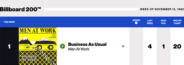 |Colin Hay.com|Men at Work(Billboard chart history)|