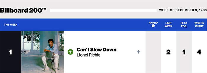 |Lionel Richie.com|Lionel Richie(Billboard chart history)|