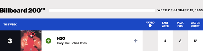 |Hall & Oates.com|Daryl Hall & John Oates(Billboard chart history)|