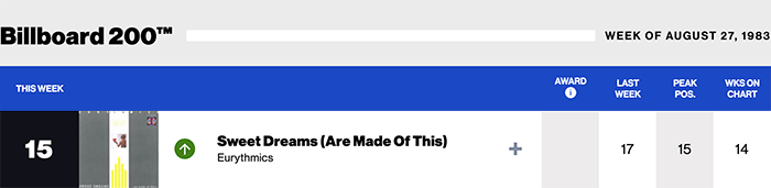 |Eurythmics.com|Eurythmics(Billboard chart history)|