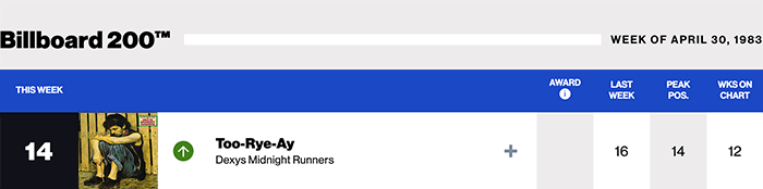 |Dexys Midnihgt Runners.com|Dexys Midnihgt Runners(Billboard Chart History)|