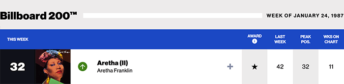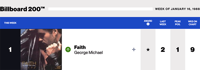 |Aretha Franklin.com|Aretha Franklin(Billboard chart history)| | George Michael.com|George Michael(Billboard Chart History)|