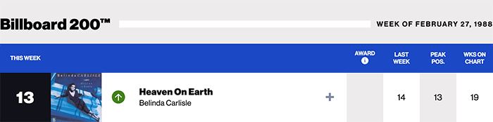 |Belinda Carlisle.com|Belinda Carlisle(Billboard chart history)| |Go-Go's.com||Go-Go's(Billboard Data Base)|