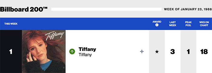 |Tiffany.com|Tiffany(Billboard chart history)| |Tommy James.com|Tommy James(Billboard chart history)|