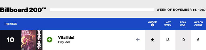 |Billy Idol .com|Billy Idol(Billboard chart history)|