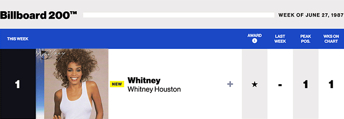 |Whitney Houston.com|Whitney Houston(Billboard chart history)|