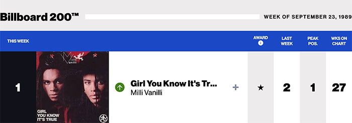 |Milli Vanilli.com|Milli Vanilli(Billboard Chart History)|