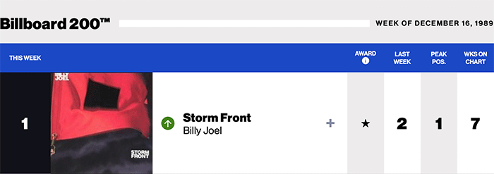 |Billy Joel.com|Billy Joel(Billboard chart history)|