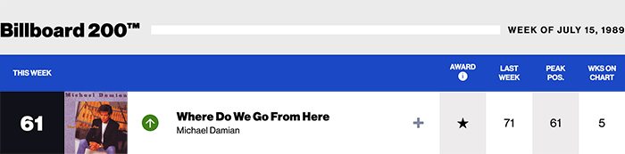 |Michael Damian(Billboard Data Base)| |David Essex.com| David Essex(Billboard chart history)|