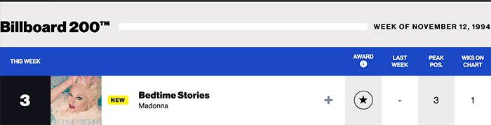 | ビルボードでナンバーワンソングになったかならなかったかは、「金メダルと銀メダル」の違いほどの差があるようです。たかがチャート上の話ですが、聴き手も「1位」と「2位」を意識させられてしまいます(私か? メディアに踊らされてるなぁ)。さて、コチラ(1995)ページでは全米ナンバーワンになれなかった曲を紹介します。 |