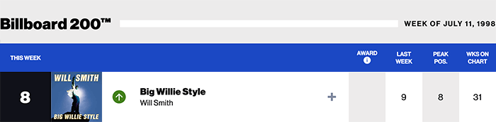 |Will Smith.com|Will Smith(Billboard Chart History)|