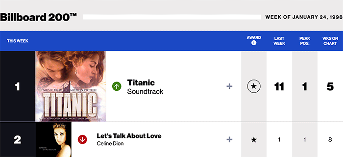 |Celine Dion.com|Celine Dion(Billboard chart history)| |R.Kelly.com|R.Kelly(Billboard chart history)|