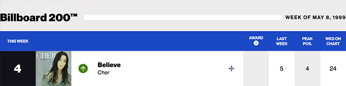 |Cher.com|Cher(Billboard chart history)|
