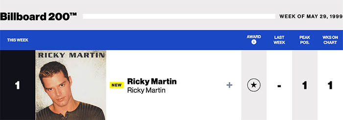 |Ricky Martin.com | Ricky Martin(Billboard Chart History)|