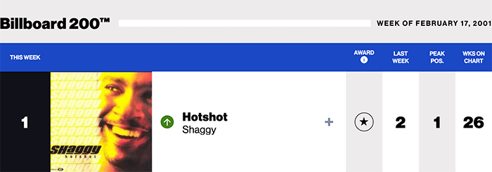 |Shaggy.com|Shaggy(Billboard Chart History)| |RikRok.com|RikRok(Billboard Chart History)|