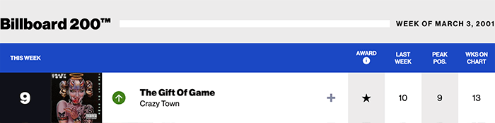 |Crazy Town.com|Crazy Town(Billboard chart history)|