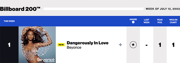 | このページでは2003年の全米ナンバーワンソングを紹介します(このページついて)。ここ数年、音楽の聞き方が変わって来たことが、チャート集計にも影響を与えているようです。 2018年から、ストリーミングデータ(音楽配信)の集計方法を変更しました。また、これまではチャートの日付の1週間前の火曜日(つまり11日前)に発表されていましたが、データ集計から発表までの期間が短くなり、日付の4日前に発表され、よりリアルタイムに近い発表になりました。たとえば最新チャートなら2025年2月1日、発表は1月28日となります。 (最新の1位はコチラ)。