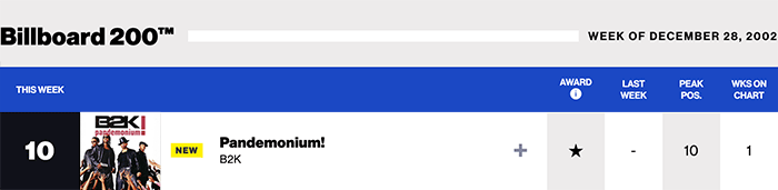 |B2K(Billboard chart history)| |Omarion.com|Omarion(Billboard chart history)| |P.Diddy.com|P.Diddy(Billboard chart history)| |R.Kelly.com|R.Kelly(Billboard chart history)|