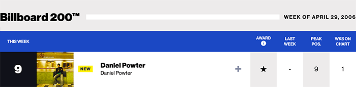 |Daniel Powter.com| Daniel Powter(Billboard charat history)|