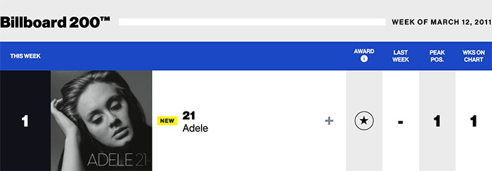 |Adele.com|Adele(Billboard chart history)|