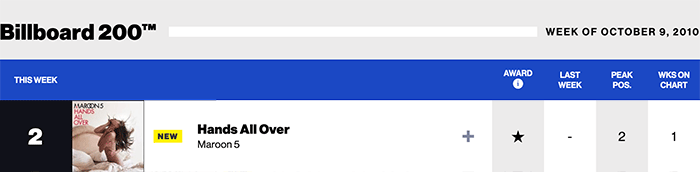 |Maroon 5.com|Maroon 5(Billboard chart history)| |Christina Aguilera.com|Christina Aguilera(Billboard chart history)|