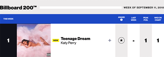 |Katy Perry.com|Katy Perry(Billboard chart history)|