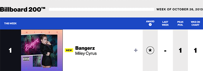 |Miley Cyrus.com|Miley Cyrus(Billboard chart history)|