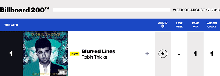 Blurred Lines/ Robin Thicke featuring T.I. & Pharrell |
