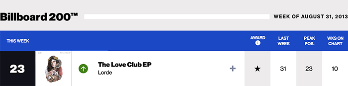 |Lorde.com|Lorde(Billboard chart history)|