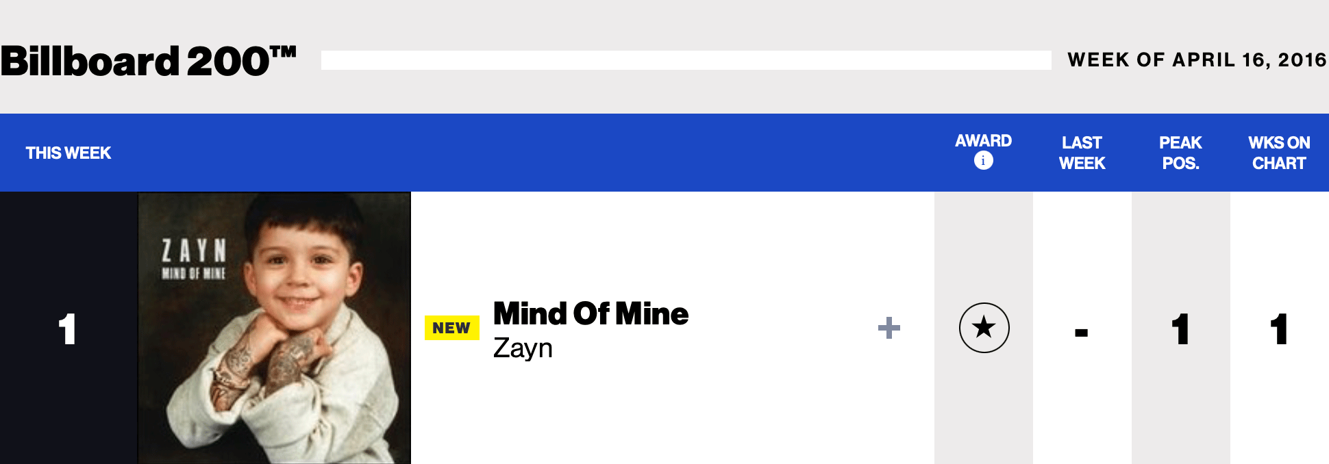 |Zayn.com|Zayn(Billboard chart history)|