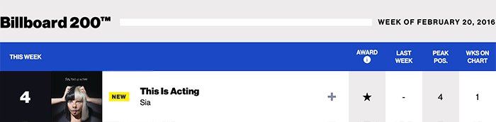 |Sia.com|Sia(Billboard chart history)| |Sean Paul.com|Sean Paul(Billboard chart history)|