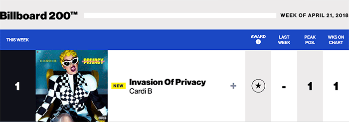 |Maroon5.com|Maroon 5(Billboard chart history)| |Cardi B.com|Cardi B(Billboard chart history)|